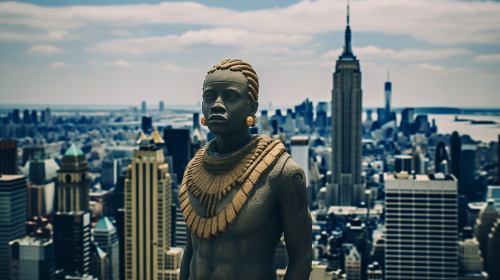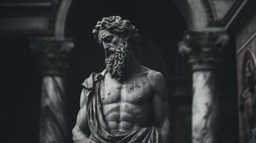 Realistic 35mm photo of a italian statue with a greyscale --ar 16:9