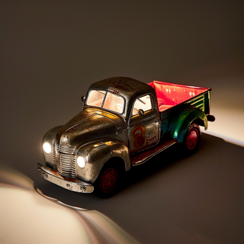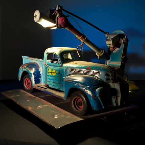 Atomic age tin toy, race truck, close-up, studio light, 35mm --s 10 --v 6.0