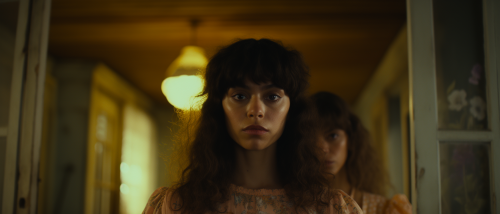 A young woman like Blanca Lewin, and a latin girl connected by mycelium, 35mm, cinematic light, dream style, --ar 21:9 -