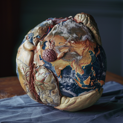 anatomical arrangement of dissected planet earth. Realistic photo. 35mm. --v 6.0