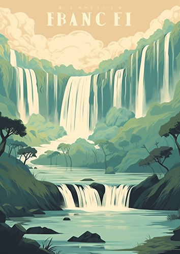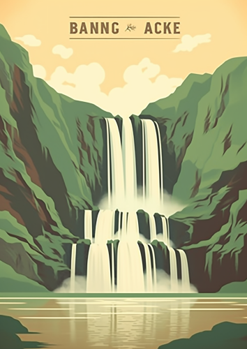 retro vintage style painting of ban gioc waterfall, vector design, travel, minimal shading, neutral color palette, vintage-inspired design --ar 5:7 --no words
