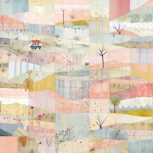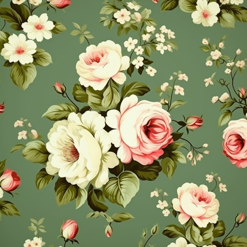 vintage, rustic, dainty, delicate blue and pink floral background pattern image. The roses are tiny and the image has a vintage feel to it. watercolor. --ar 3:4