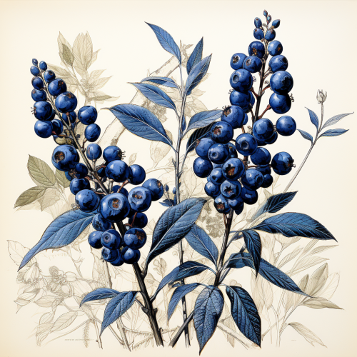 detailed sketch of a indigo plant in indigo color on vintage paper texture --s 750