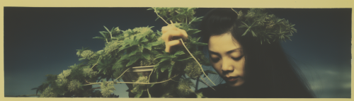 vintage polaroid of japanese vintage poster of a sleep inducing herb. It calms the ancient mind, cinematographic, dramatic light, --ar 7:2