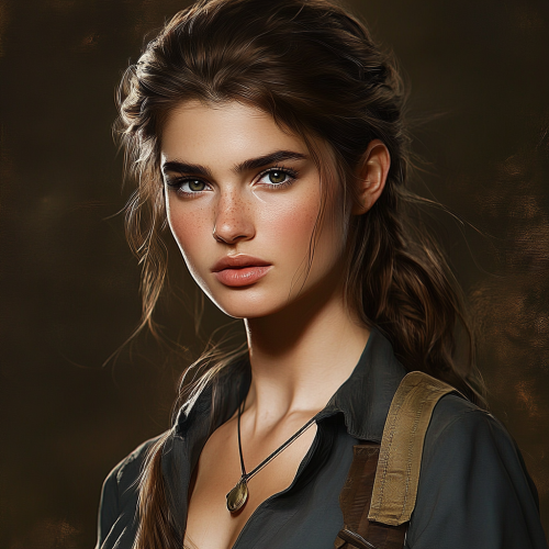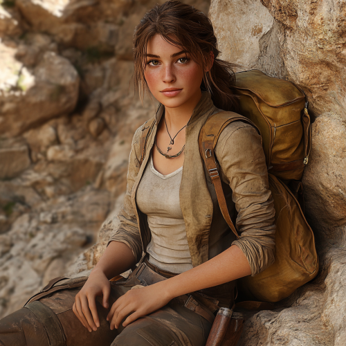 an ultrarealistic piture showing the whole person of a woman with the following traits: Age: 28, Gender: Female, Music: Rock with orchestral elements, Education: Paleontologist, City kid/Country kid: Country kid, Favorite book/movie: Shogun, Indiana Jones, Hobbies: Hiking, Climbing, Hunting, Martial arts, Appearance: Brown-haired, Athletic, Attractive, Youthful, Character: Brave, Intelligent, Independent, Determined