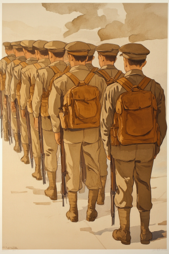 I poster published in the United States during wwi that shows draftees registering. Done in tones of browns, creams, cognac and other neutrals. --ar 2:3