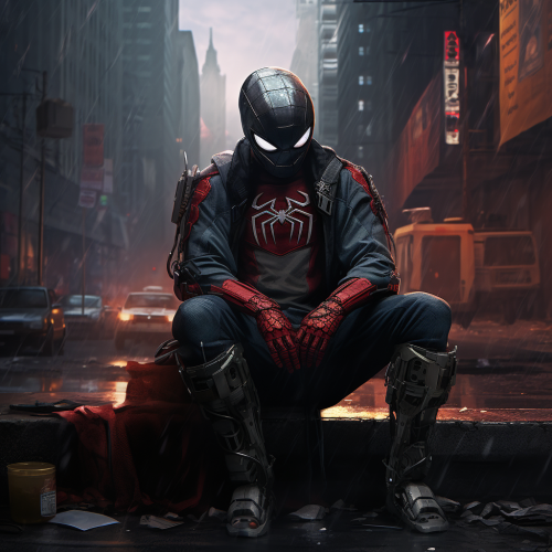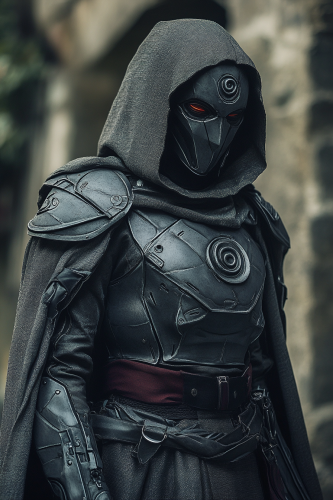 Action shot full body image, android fantasy gun sligner, android face, wearing medieval leather armor, wearing a cape with hood, one water energy hand, hand fist, in the style of marvel comic book --ar 2:3 --v 5.1 --s 500