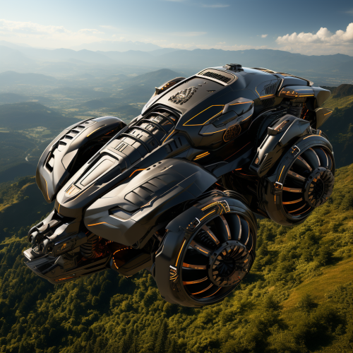 A futuristic, metallic cabin with sharp angles and neon lights, floating above a dystopian cityscape, symbolizing refuge, innovation, and the stark contrast between nature and technology. Art Style: Cyberpunk Futurism --v 6.0