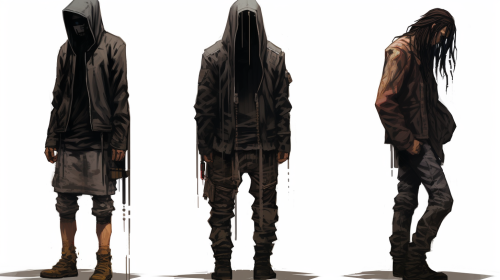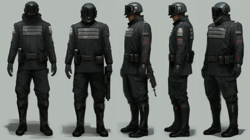 Cyberpunk dystopian police officer concept art sketches, several different sketches, police, evil, mysterious, armour --ar 16:9
