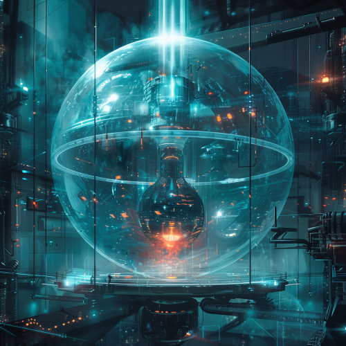 Very Powerful, Meaningful, and Stunning Visual Prompt Sentence: A futuristic, transparent energy cage encasing a vibrant, pulsing light, set against a dark void, symbolizing the tension between power, control, and the desire to break free. Art Style: Futuristic Sci-Fi --v 6.0
