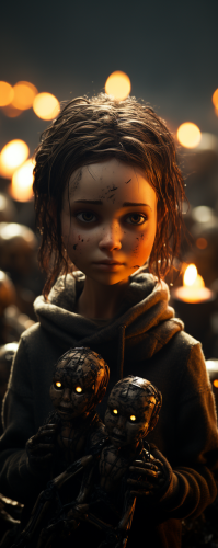 3D Blender render model of Ameca the robot. Precisie detail, high quality and perfect lighting. Dark background. --v 5.0