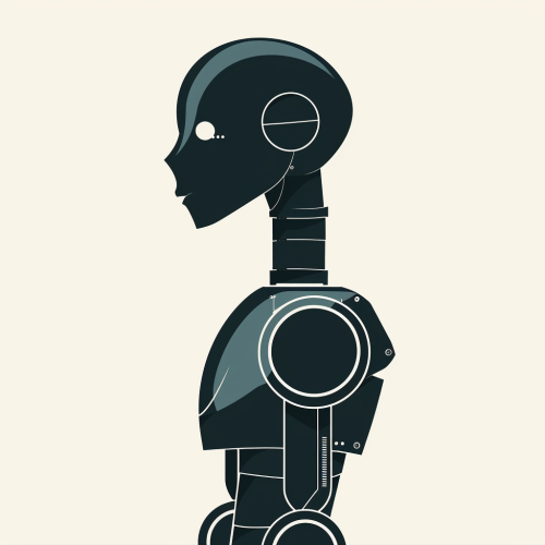 A vector illustration of a robot silhouette, capturing the smooth, rounded shape of the robot in a simplified, stylized form. The silhouette features the essential contours of the robot's head, arms, and body, with minimal details, perfect for use as a graphic asset. The design is clean and flat, suitable for integration into various web and digital contexts. hd quality, flat design, minimalistic, vector art --ar 1:1 --v 6.0
