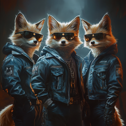 3 adulty techno partying gangsta foxes in dark denim in new blade runner style mixed with SWAT Kat style mixed with top gun aviators. hyper realistic and stoic.