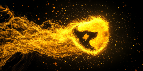 High-resolution image of a github logo in yellow caught in fire. The background is black and clean. The design is modern and clean, with a tech-centric, digital theme --ar 2:1