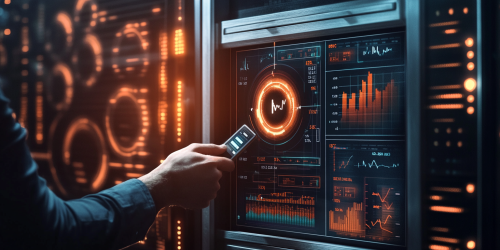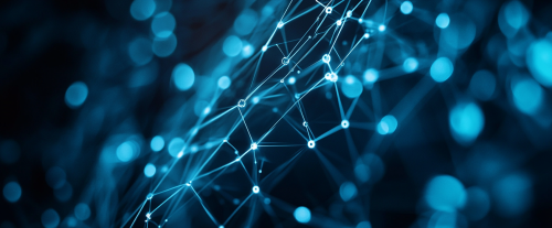 Generate a digital art for A digital art representation of an evolving tech landscape, featuring elements like Python and SQL symbols, interconnected networks, and futuristic technology trends. Use shades of blue. --ar 12:5