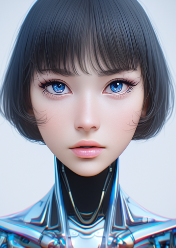 Torso Up Portrait of an Attractive Cute Japanese Woman Character with Short Black Hair and Blue Eyes Dressed as a Realistic Sci-fi Retro-Futurism Space Hero, Japanese Animation Cartoon Art Style, Same Face as 765430206, --ar 5:7 --niji 6
