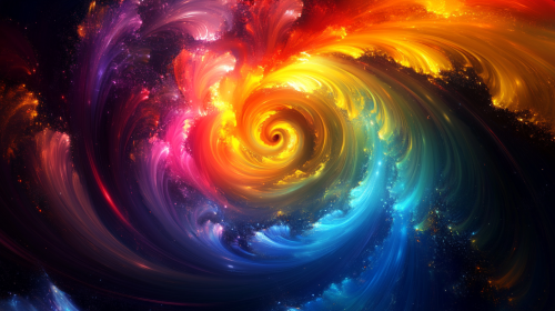 A vibrant, dynamic vortex representing a positive feedback loop, with swirling energy and growth spirals radiating outward. Bright colors blend into a warm, glowing core, symbolizing power and acceleration. The scene should have a sense of movement and intense force, as if spirals are propelling forward, creating an expanding cycle. The background is abstract, with trails of light showing progression and momentum, creating a compelling, visually striking sense of energy, momentum, and intensity. Highly detailed, with gradients and shadows for depth and realism --ar 16:9
