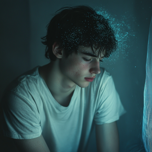 Les quatre grands maux. Isolement, sommeil, attention, addiction, plongeons dans ces maux contemporains pour offrir des pistes concrètes et inspirantes. --quality 2 --style raw --stylize 750 --v 6.1