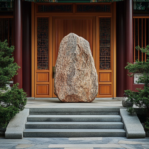 Chinese huge view stone in front of the door, represents the stable, reliable and supportive nature of a rock, resonating with the Yang aspect of the Earth element.