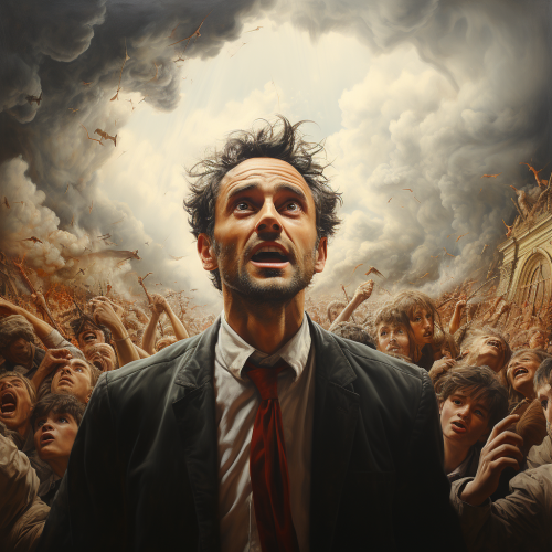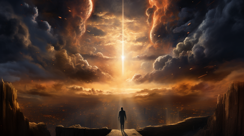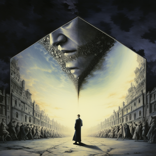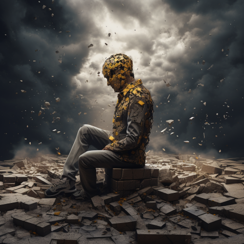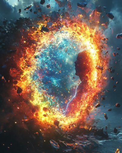 Identity crisis, as proposed by psychologist Erikson. The moment when lifelong values collapse, and the soul awakens to the absolute need to live right. A turning point in life. From here, a challenging path of self-illumination awaits, far from the predefined dark rails of society.