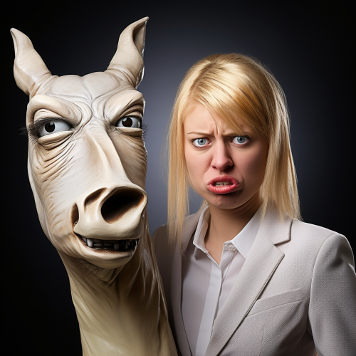 backstabber hypocrite woman with a donkey-like long face and slightly ugly, bleaches her hair blonde --s 50