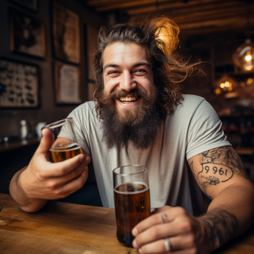 200lbs healthy bearded guy with mid length wavy hair celebrating being alcohol free