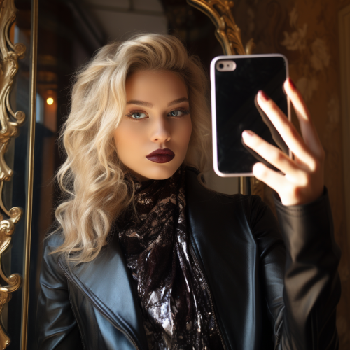 wearing glossy satin shirt, beautiful Kristin Kreuk, selfie, soft tonal range