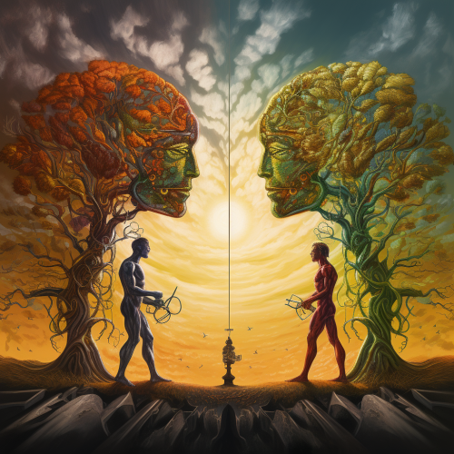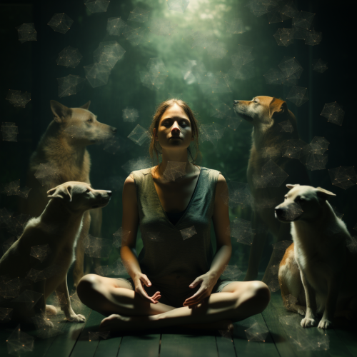 Create an image, with a background, without text, a reflection of the complex emotions of a human, where the main characters will be an animal reflecting the answers, and a human, show all the manifestations of feelings that will be below without text, translate everything into the emotions of this human: Fears, weakness, “Where they reject me and where they put pressure on me. I fear rejection and hate violating personal boundaries." Hidden desires of the animal: Most often it is fear, I don’t remember my dreams well, “Success, beauty, love of freedom, independence, power Fill in the image with your past experience: With the behavior of my mother in childhood, relationships with my mother, Reflect your fears in an image, creating a multifaceted image: Fears of Intimacy, Reflect in the picture the character traits of an animal and a human: Humor, intelligence, Mistrust, closedness, coldness, aggressiveness, rudeness Reflect specific personality traits: The role of a girl of easy virtue, I don’t dream, but set goals Show the wishes of everyone who is present in the image in the background: I would become a full-fledged woman A image in a futuristic style, monochromatic, old-fashioned, cozy, golden lighting, nostalgic and dreamy atmosphere.
