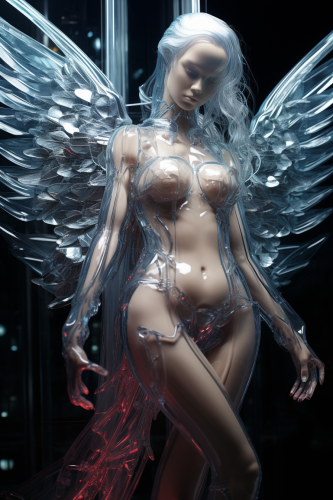 Cristal girl angel, sculpural delicious body, abs, light from behind --ar 2:3