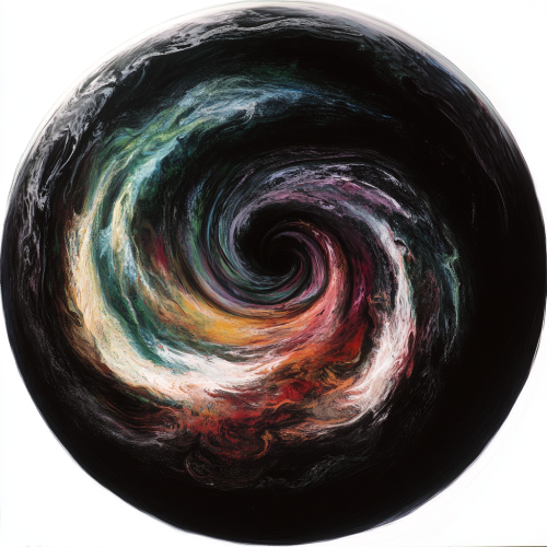 A new planet as seen from space, Black, dark ultraviolet swirls of black green, black red, black purple, a swirling plack maelstrom, colr pallatte is black, white backround, a vortex, ultraviolet dark colors