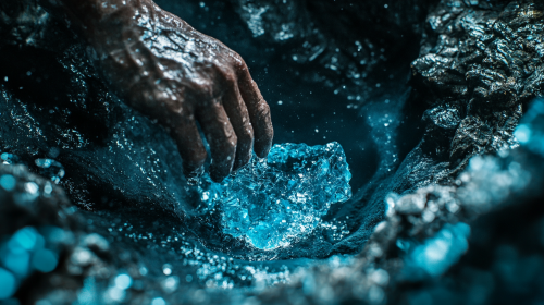 environment, using an intricate hand mechanism for extracting a shinning mineral in a weird place, close view, hdr, highly detailed, style raw --chaos 10 --ar 16:9 --v 6.1