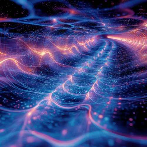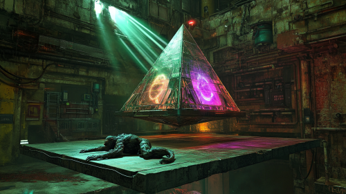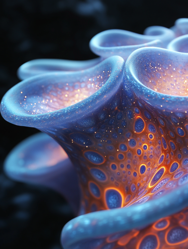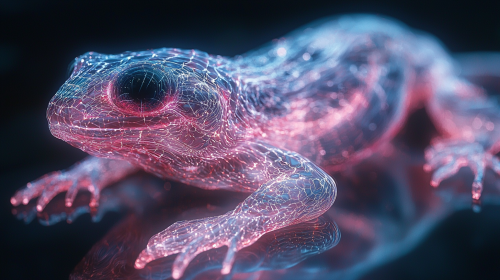 Photo realistic: an alien hybrid pet, constructed of synthwave neon optic fibers exists In a fluorescent liquid void, --chaos 10 --v 6.1 --style raw --s 1000 --ar 16:9 --q 2