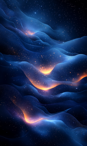 Color Scheme: Primarily deep navy blue, black, and muted purple tones, giving it a sleek, futuristic look. Central Focus: A dark central area, ideal for placing white text on top for high readability. Textural Elements: Smooth, abstract, cloud-like formations with subtle gradients and soft waves that create a sense of mystery and an ethereal nighttime atmosphere. like a space nebula landscape. Subtle Details: Minimalistic dotted patterns and faint circular outlines around the edges, adding a slight tech-inspired or digital feel without being too prominent. Overall Composition: The design is clean and minimalistic, with the dark tones concentrated in the center, fading into softer colors toward the edges to create a subtle frame effect. There are no strong focal points or extraneous elements, making it ideal as a background image for an app landing page. there should be no solid lines or shapes in the center, to not conflict with the white text that will be added later --ar 3:5 --s 750