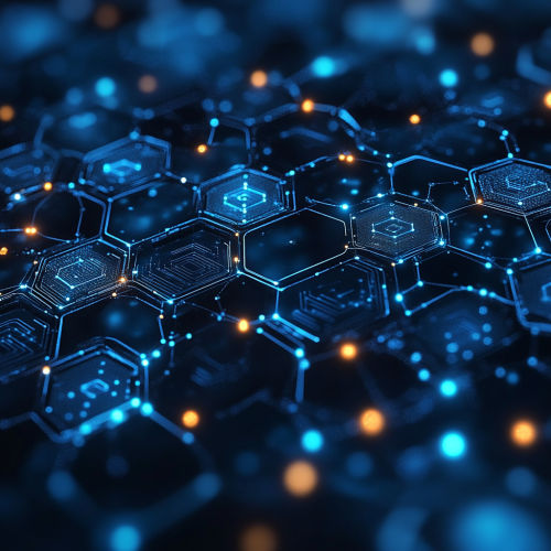 An abstract visualization of ‘smart healthcare,’ using interconnected hexagons and geometric shapes to symbolize data flow and advanced medical databases. The design features subtle circuitry patterns and digital nodes, representing connectivity and information exchange. Elements like layered hexagons and faint, glowing connections give a sense of database structure and networked intelligence. Colors are cool tones like blues, teals, and soft purples, creating a calm, high-tech ambiance that evokes trust and innovation in digital healthcare --style raw --s 750