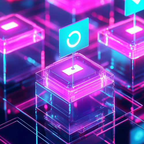 High-tech, futuristic digital background with concentric circles, glowing neon lights, and subtle geometric patterns. Vibrant tones of electric blue, purple, and red blend seamlessly, creating a sense of depth and digital connectivity. No text or symbols, just abstract technological elements, data lines, and light trails to evoke a digital ecosystem in a clean and minimalist style --v 6.0