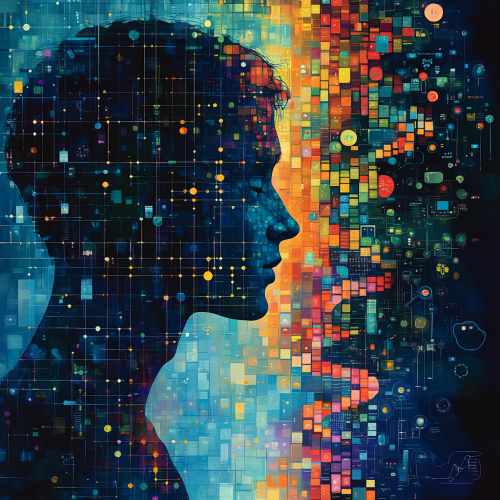 Generate a digital art for Light gray background with small, minimalistic digital art elements such as abstract tech icons, quirky gadgets, and whimsical speech bubbles scattered at the edges, using contrasting colors like navy blue, coral, and teal. Ensure the elements are small and do not overshadow the slide content. . --ar 443:960
