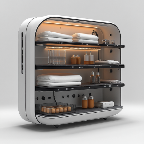 A hyperrealistic AI healt care (abstract thing) on a pure white background, made from matte, non-black metal with a subtle metallic sheen. The rack has a modern, minimal design with realistic textures, emphasizing the look of high-quality metal. Slightly futuristic but grounded, with understated illuminated details that suggest data flow. The overall appearance is sophisticated and professional, focusing on realism without strong futuristic elements --style raw --s 750