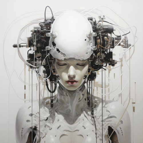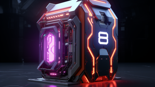 8K 3D model high resolution in the style of a cyberpunk, machine, with neon style pieces, tech style, on a white background --ar 16:9