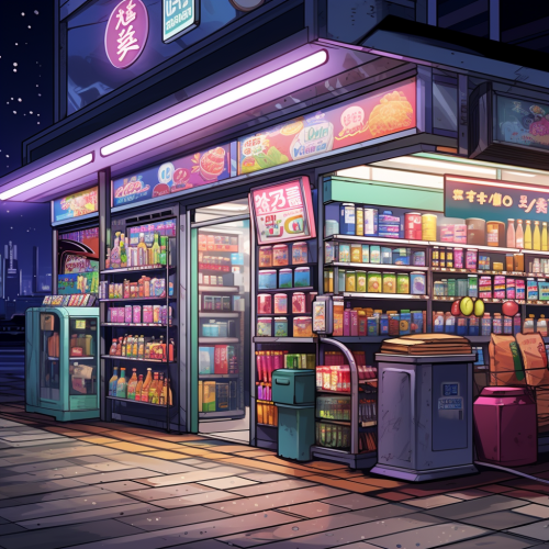 a big exhibition stand with interactive touch LED screens all around, a big screen in the back, no people, products displayed, colours are pink and blue --ar 16:9