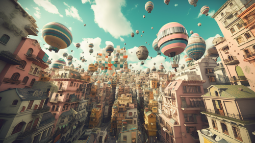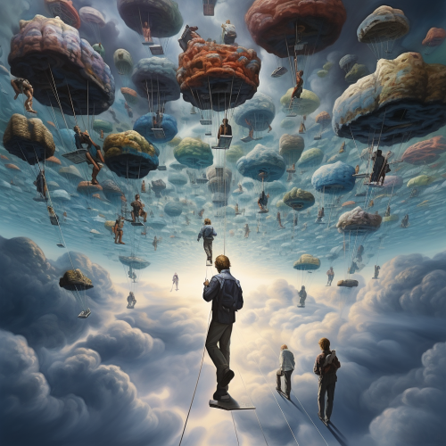 une foule de personnes de genre et age variés, des réseaux de neurones flottant dans le ciel --stylize 50
