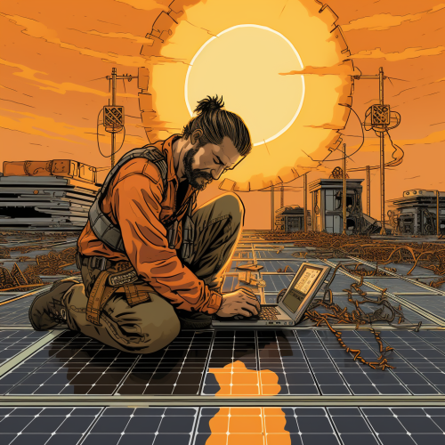 an illustration for "grid application" during a solar installing process. orange colours and dark outlines
