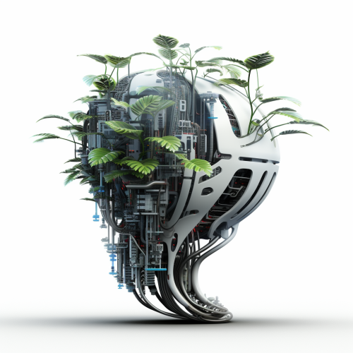 The plant is growing, cyberpunk style, 3d, cyberpunk style, isolated, white background, photorealistic