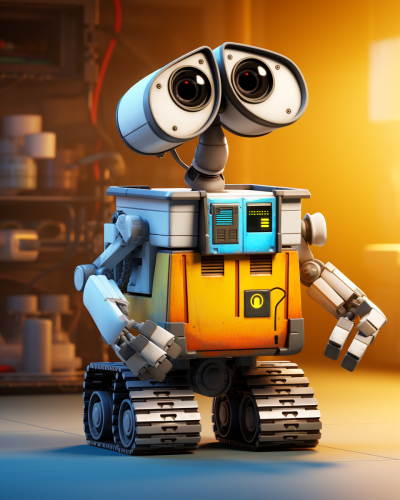 In a lab setting, robot helping human::0.5 A small, anthropomorphic robot about the size of WALL-E, with a color scheme consisting of primary blue and white, similar to a lab coat. A pair of large, round, black eyes that resemble safety goggles, exuding a sense of eagerness and curiosity. On its arms, the robot has utility clips that hold miniature lab instruments like pipettes and test tubes, all in beginner-friendly soft rubber material. A flat, built-in screen on its chest displays basic code and equations, resembling a whiteboard. Treads for mobility instead of legs, suggesting limited movement capabilities. --ar 4:5