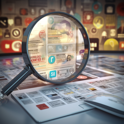 A magnifying glass hovering over a search bar with the words 'Your Business', surrounded by clickable ads, symbolizing SEM