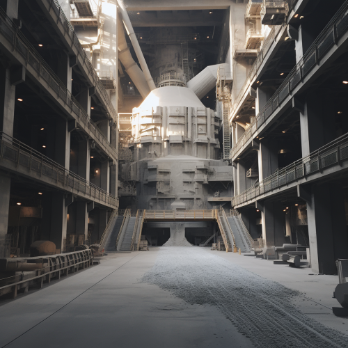 large, cement factory that makes cheesecakes brutalistic communist russia, huge conveyor belts, delivery trucks massive pallets