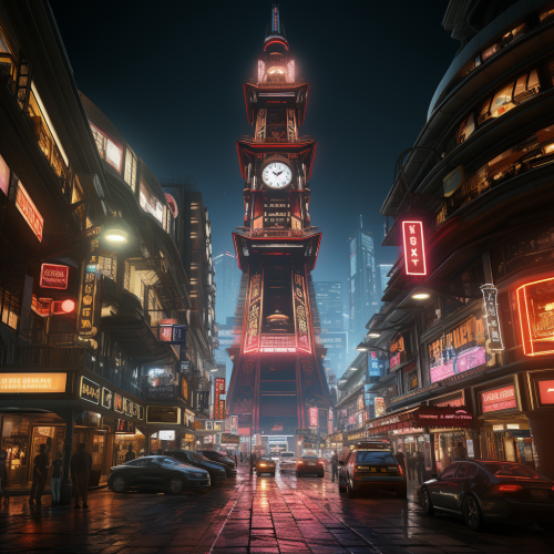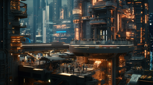 christopher nolan inside a highly detailed fluorescent scifi city --ar 16:9