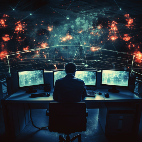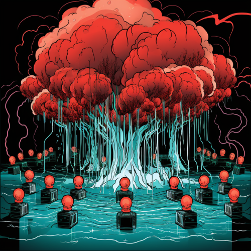 an illustration of a DDoS attack on a web server, futuristic style, photographic