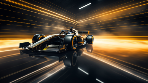 4k photo realistic formula one car that looks like a flying space ship with laser headlights --ar 16:9