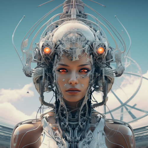 a synthetic biological android, humanly accurate but design for interstellar travel, a beautiful female amalgamation of technologically advanced bio-synthetic engineering piloting an advanced deep space space craft.