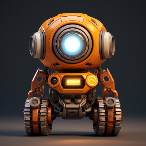 maintaince small robot, one wheel for legs, industrial but anthropomorphic. LED face with expression, cute, cinematic
